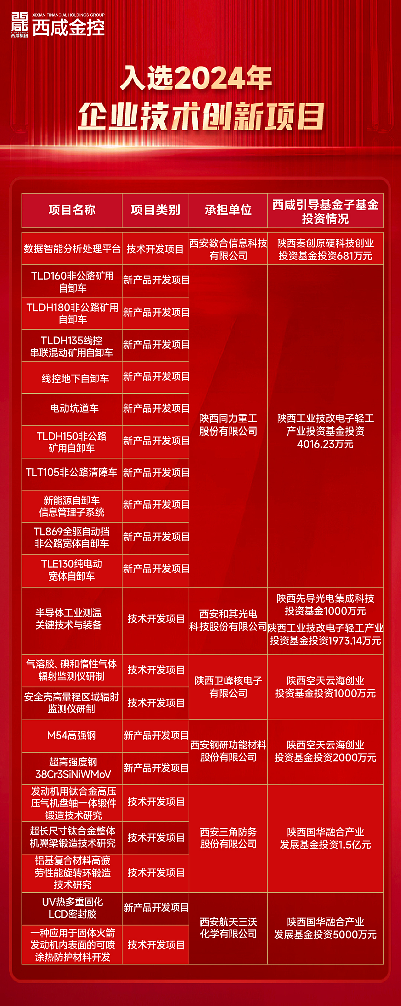 近日,西安市工業(yè)和信息化局發(fā)布了《2024年西安市技術(shù)創(chuàng)新項(xiàng)目計(jì)劃(第一批)》名單,西咸引導(dǎo)基金投資支持的西安數(shù)合信息科技有限公司、陜西同力重工股份有限公司等7家公司21個(gè)項(xiàng)目順利入選!